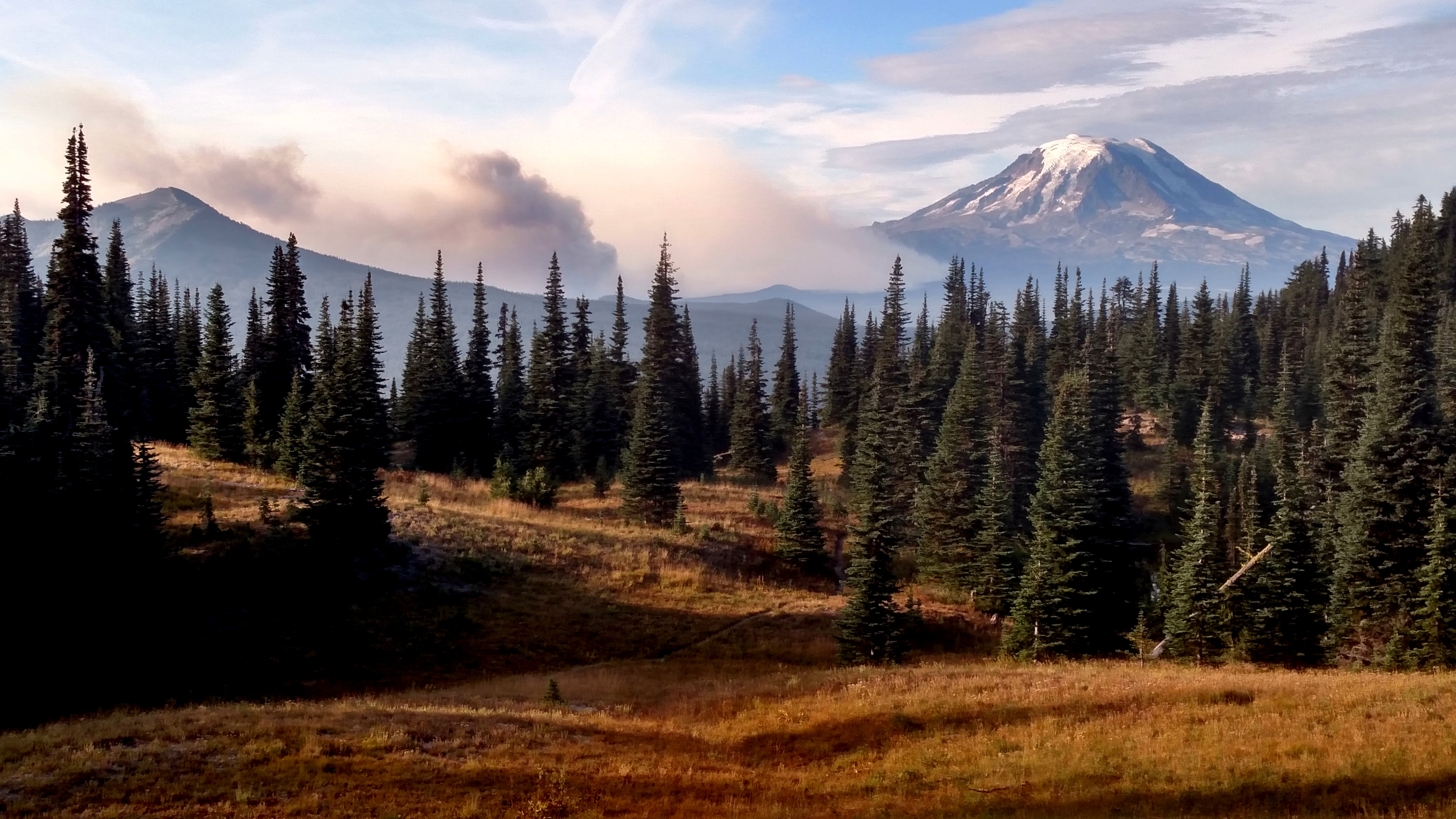 Although we have been out of contact with the rest of the world for the last ten days, most of you have probably had access to news reports over the past weeks and are therefore well aware that the Okanogan Complex is the largest wildfire in our state’s history. The Chelan Complex is also devastating the northern regions, and will likely pose a threat to our ability to finish our hike as we travel further north. But while it’s understandable that most Washingtonians are focused on the flames up north, many may not realize that a lesser-known (and admittedly much smaller) wildfire is currently burning on the flanks of Mount Adams in southern Washington. This fire, called the Mount Adams or Cougar Creek Fire, has played a central role in shaping our hike over the past weeks.