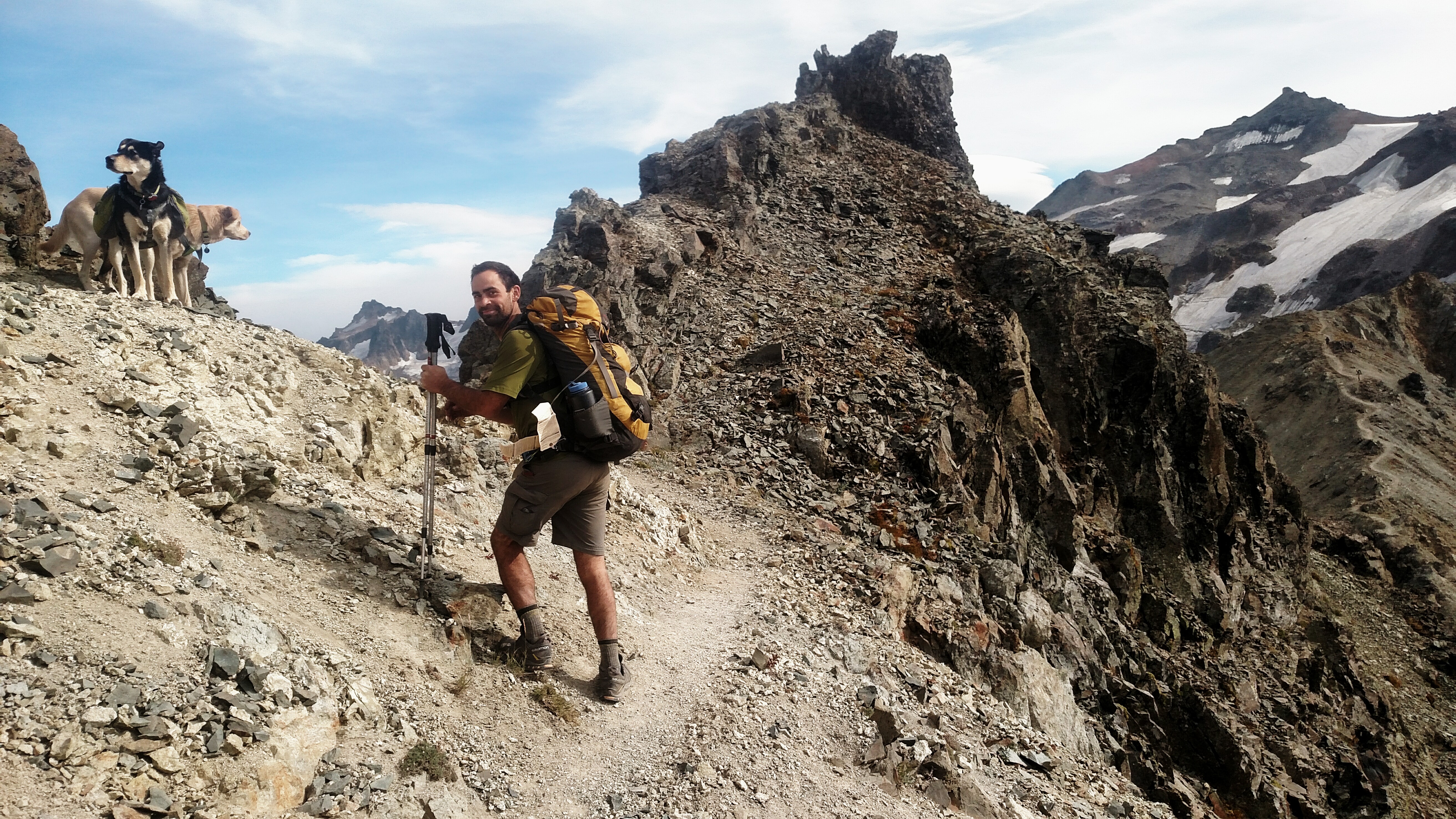 After we had hiked roughly ten miles into the Mount Adams Wilderness, we arrived at a wonderful campsite near a mountain lake and were happy to call it a day. Just as the dogs jumped gleefully into the lake and we began to settle in for the night, a Forest Service ranger approached us and informed us that the winds had shifted and we had to evacuate the area—immediately. We reluctantly hiked an additional seven miles, exiting the PCT on a climber’s trail.